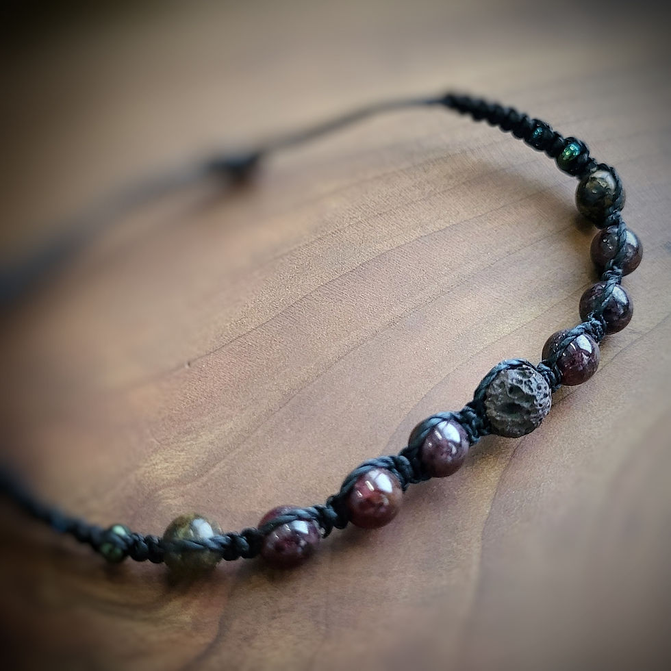 Caves // #MRQBR079 // garnet + lava stone + bronzite